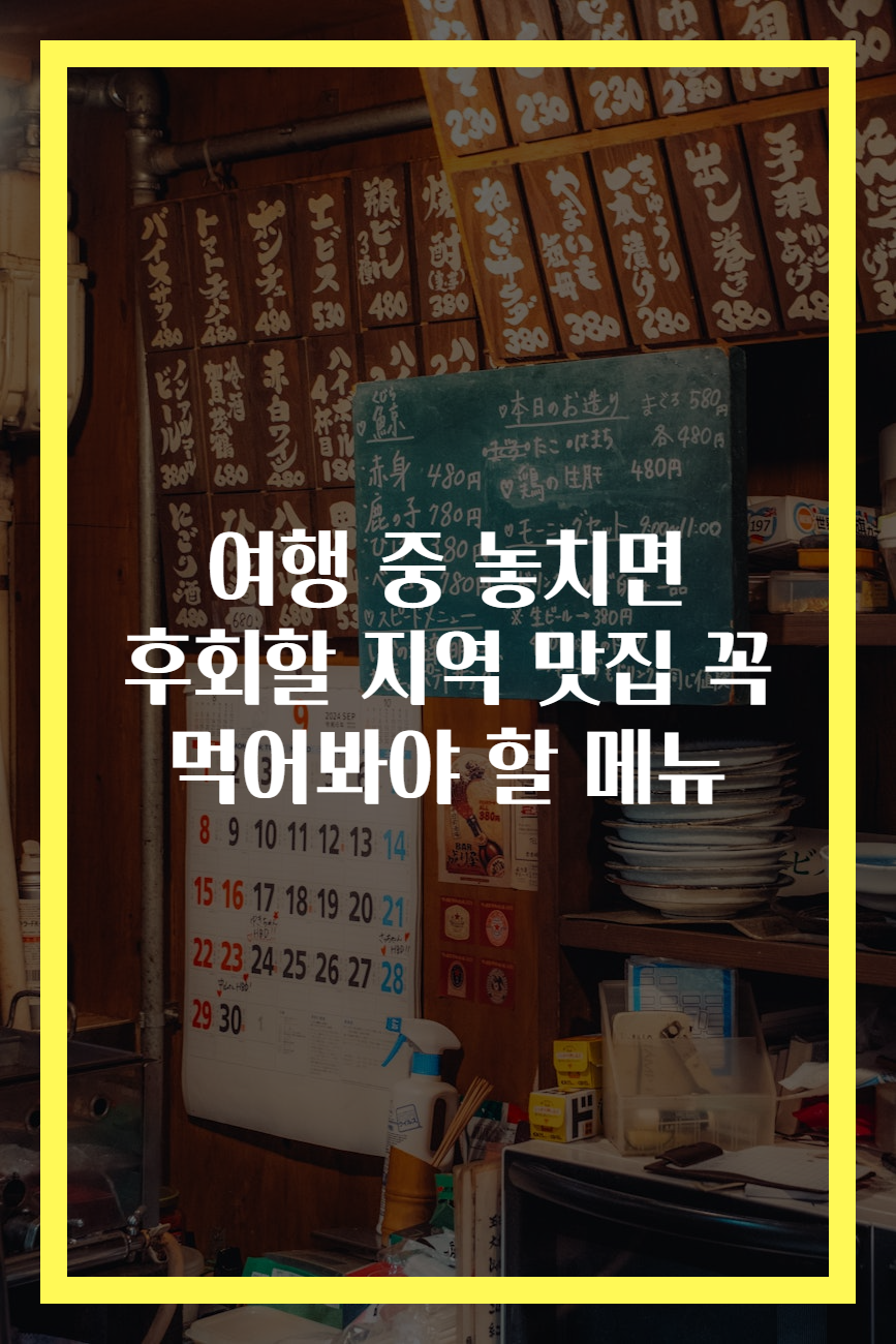 메타 설명: 여행 중 놓치면 후회할 지역 맛집과 꼭 먹어봐야 할 메뉴를 소개합니다. 새로운 음식 문화를 탐방하며 잊지 못할 경험을 만들어 보세요!