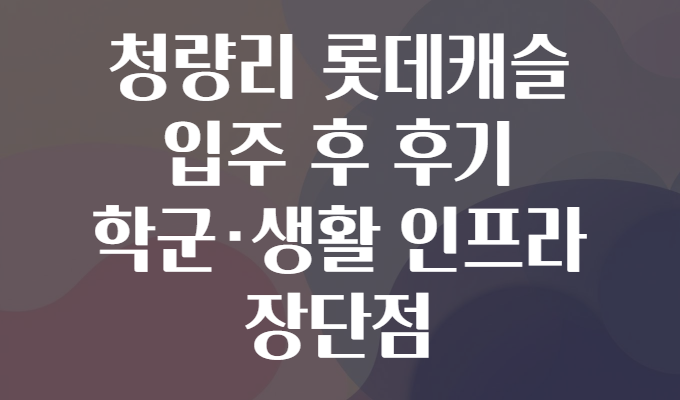 🤔 청량리 롯데캐슬 입주 후 후기: 학군·생활 인프라, 장단점 총정리🌟
