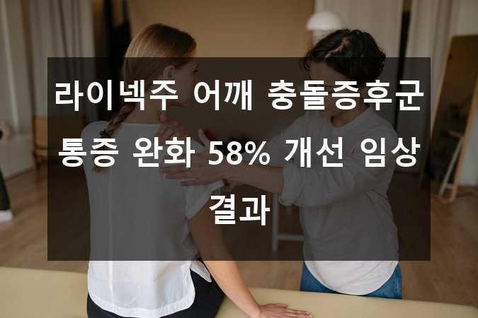 안녕하세요! 오늘은 🏥 어깨 건강에 관심 있는 여러분께 아주 반가운 소식을 전해드리려고 해요. 혹시 ‘어깨 충돌증후군’ 때문에 고생하시는 분들 많으시죠? 🤕 그런 분들에게 희소식! 최근 발표된 라이넥주의 임상 결과에서, 어깨 충돌증후군 환자의 통증이 무려 58%나 개선되었다는 놀라운 데이터가 나왔답니다.
